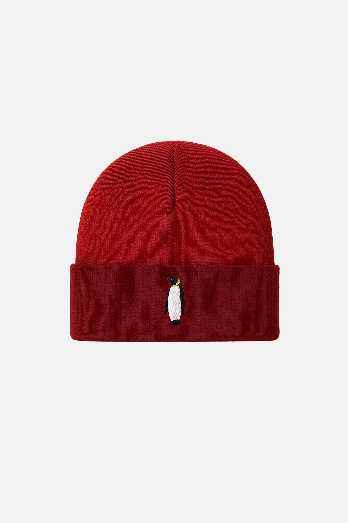 İmparator Penguen Triko Örgü Bere - Kırmızı