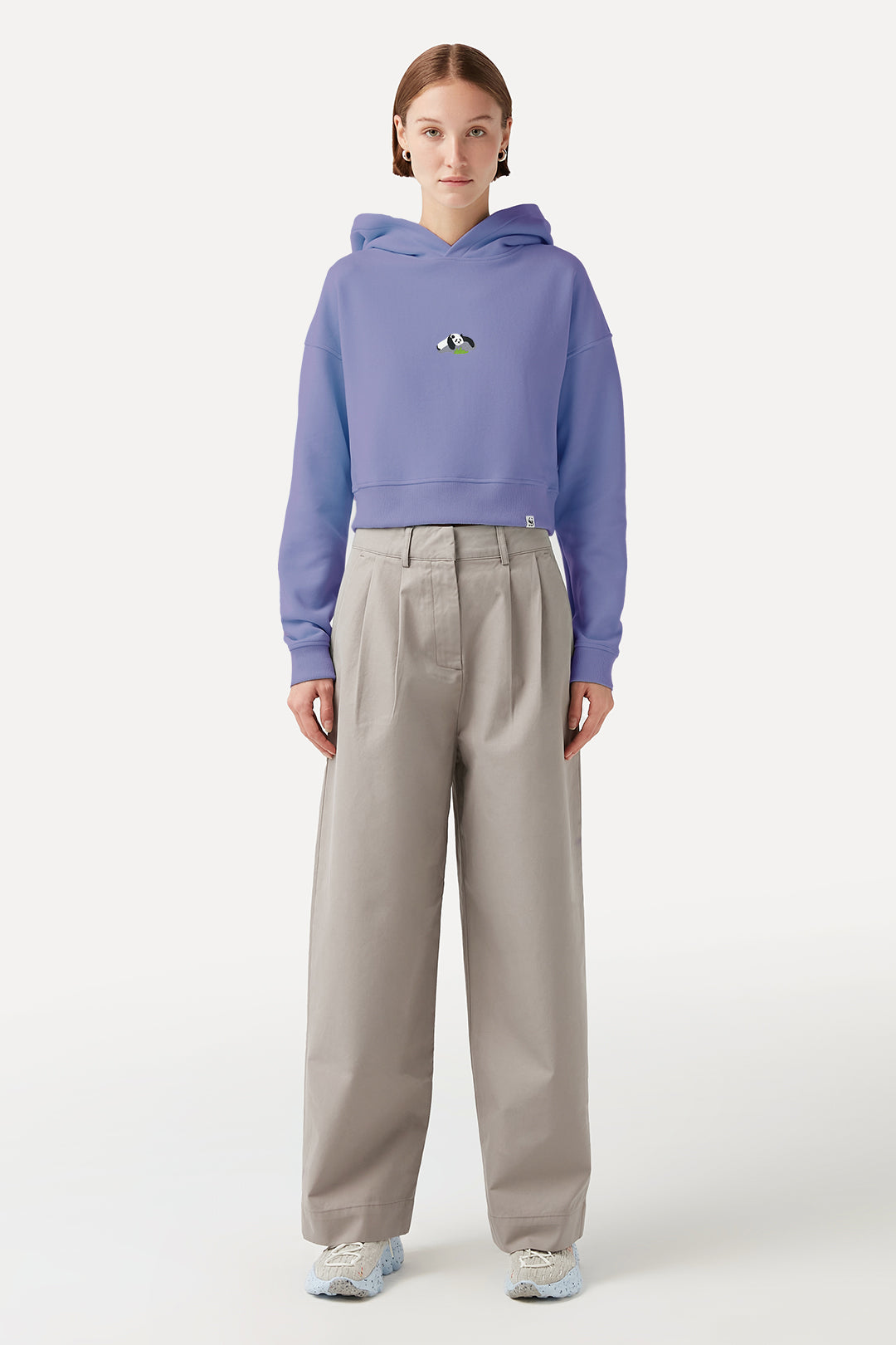 Super Soft kumaştan, nakışlı, kadın, regular-fit crop hoodie.